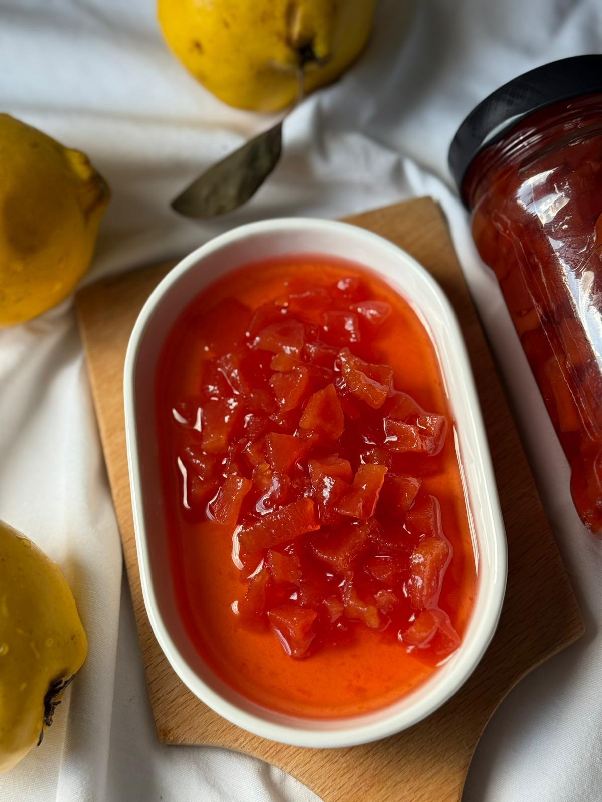Ev yapımı ayva reçelimiz, doğal tat ve zengin lezzetiyle kahvaltı sofralarına, tatlılara mükemmel bir eşlikçi olur.